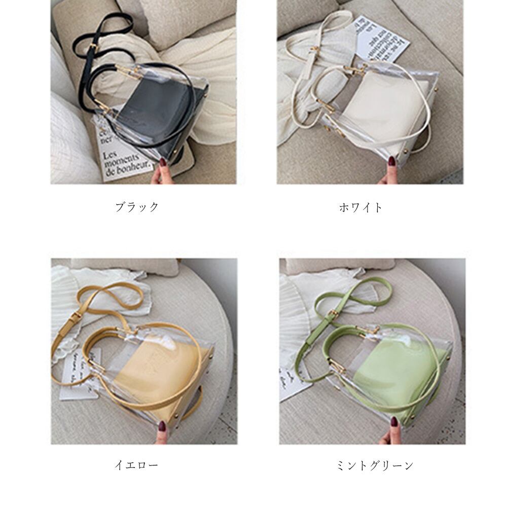 【 国内発送 b056 】4色展開♪ ポーチ付きクリアバッグ ショルダーバッグ ハンドバッグ ミニバッグ クリア