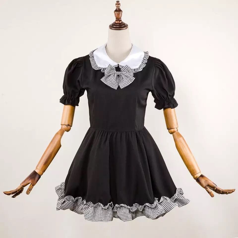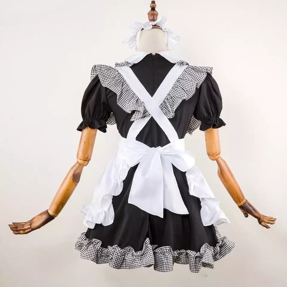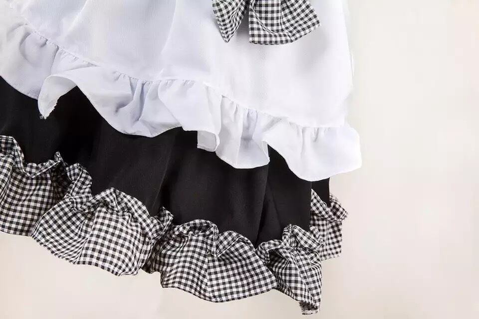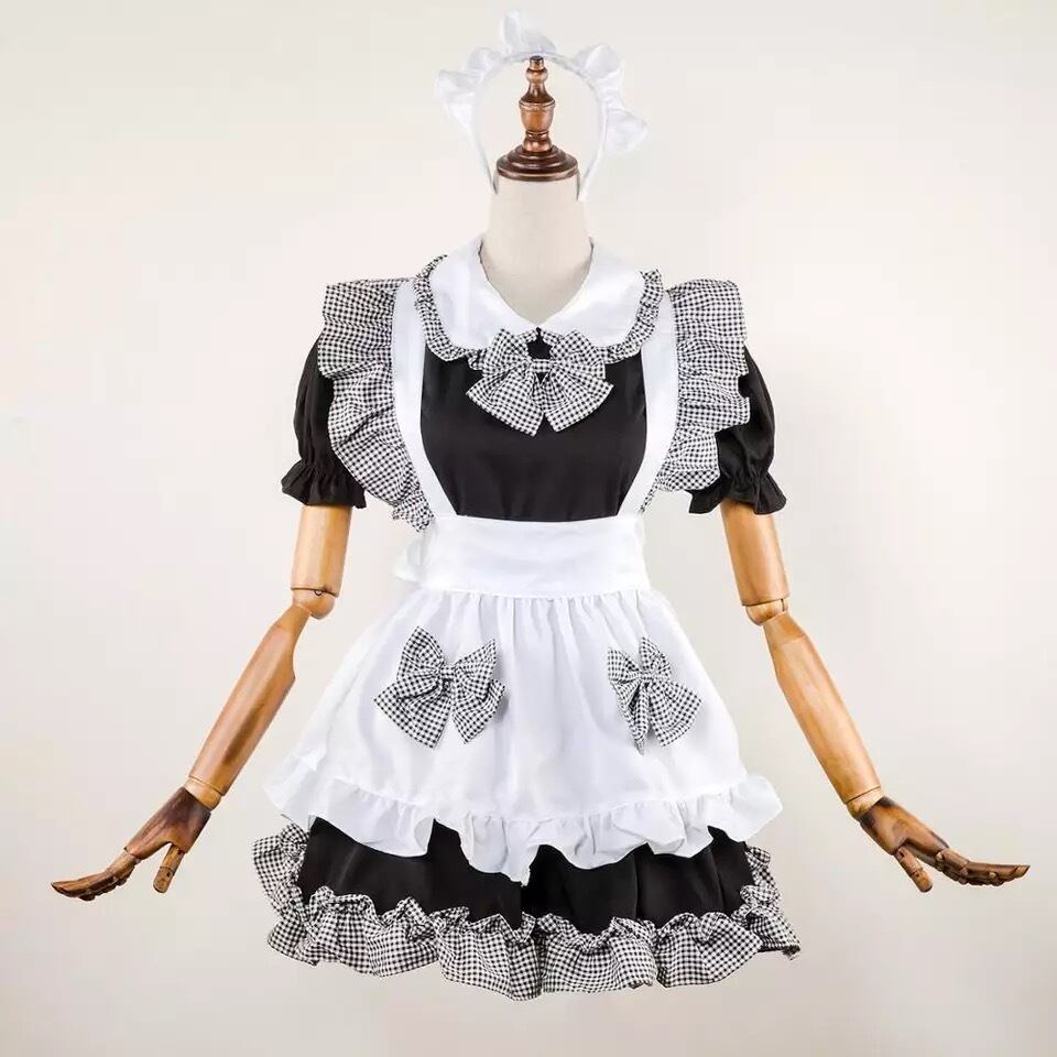【 国内発送 c029 】チェック柄メイド服 3点セット メイド服 メイドワンピース エプロン カチューシャ コスプレ 衣装