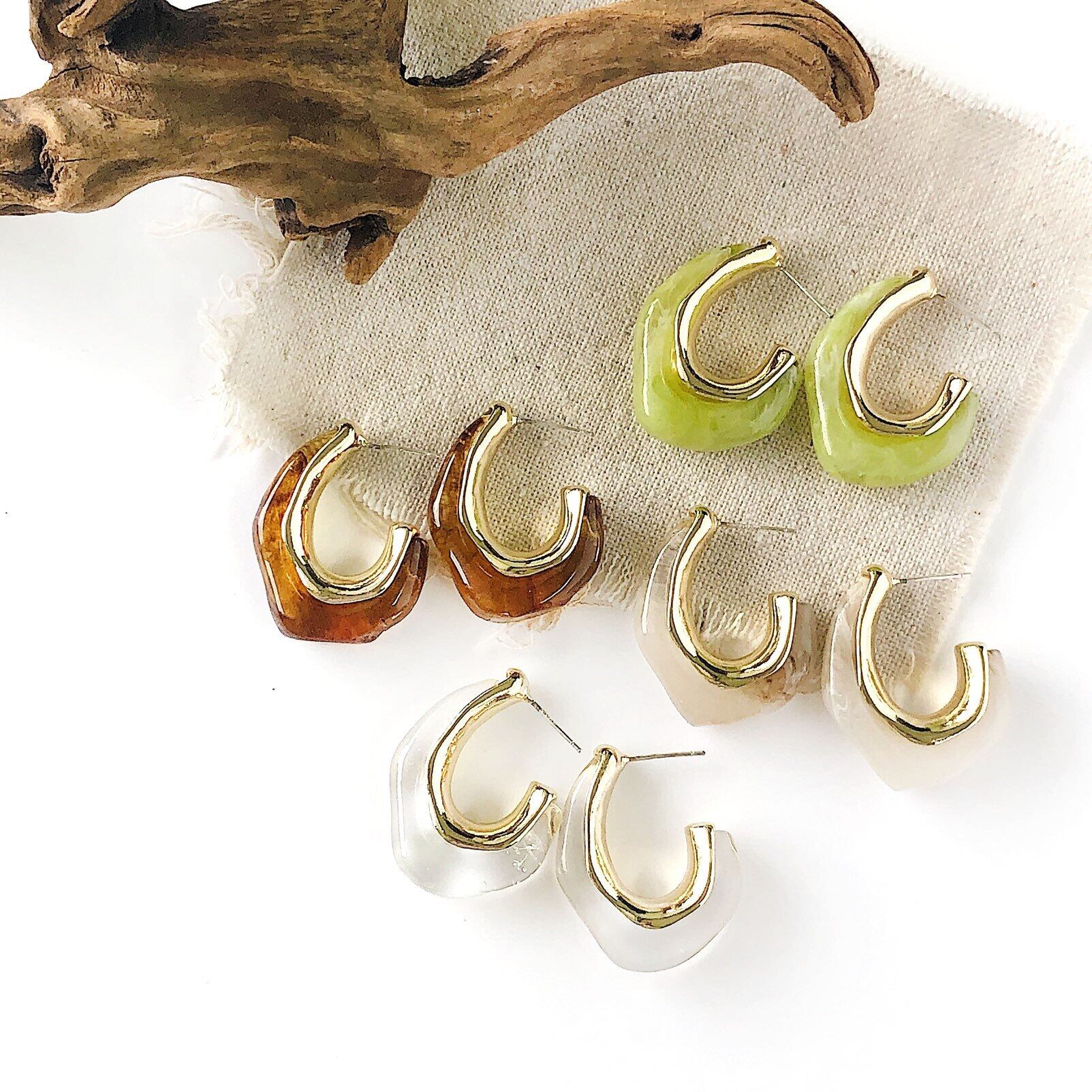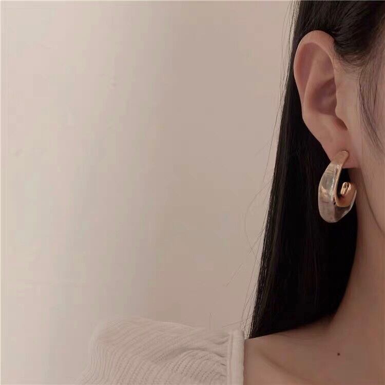 【 国内発送 a148 】大理石風フープピアス ピアス 大ぶり ゴールド メタル フープ クリア