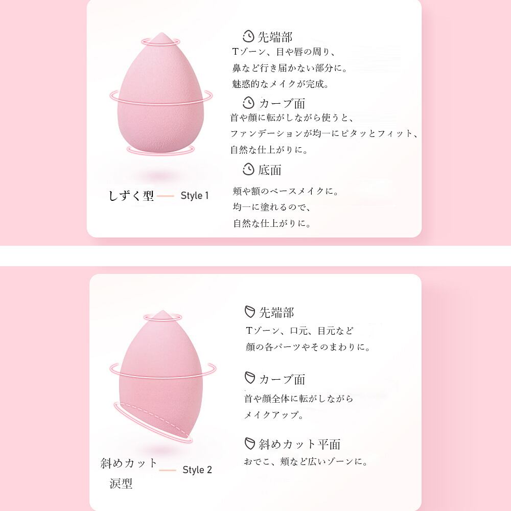 モイスト&ドライ両用可能の収納スタンド付きメイクスポンジ3個セット。