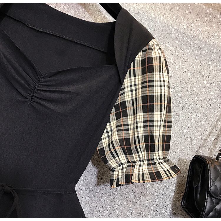 【 国内発送 d238 】大きいサイズあり チェックスリーブワンピース スリット 膝丈ワンピース ワンピース L 2L 3L 4L 5L