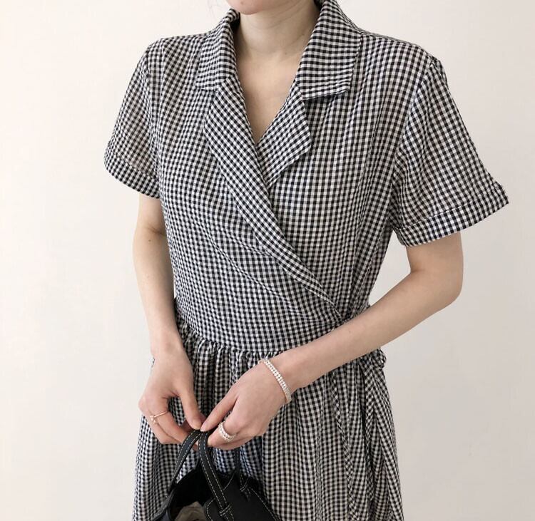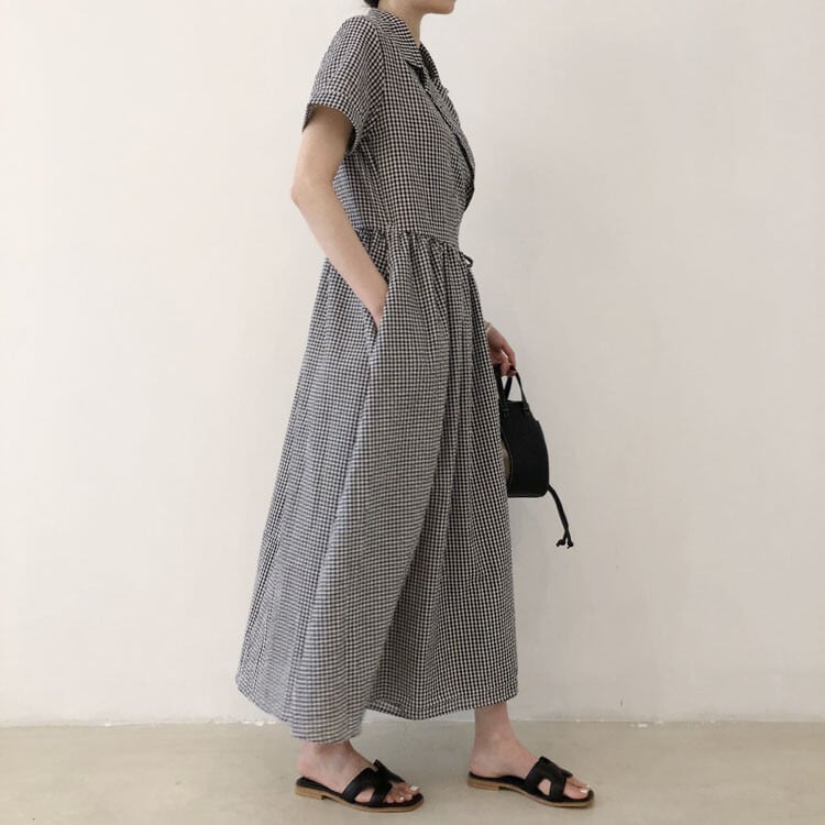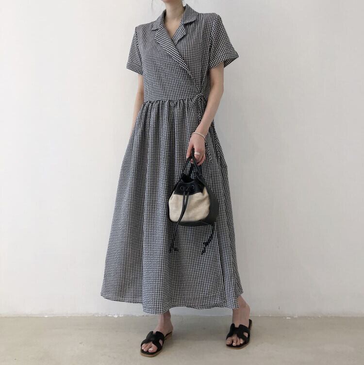 【 国内発送 d243 】チェック柄巻きスカート風ワンピース ワンピース ロング カジュアル 大人 コーデ きれいめ