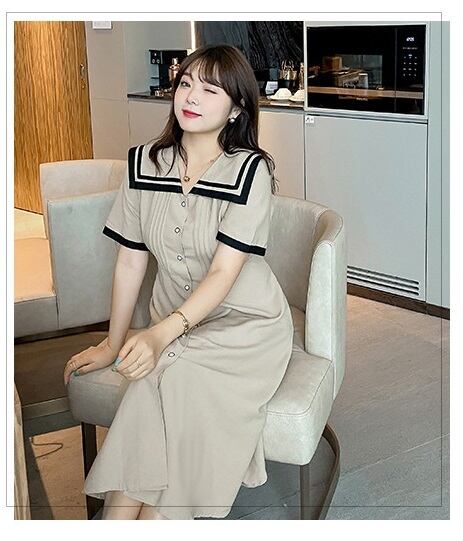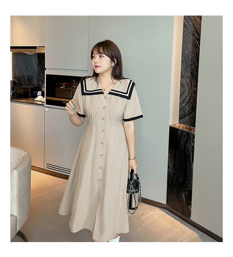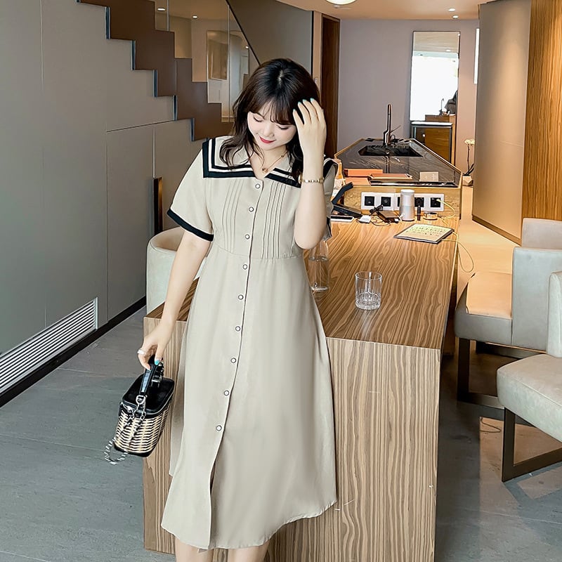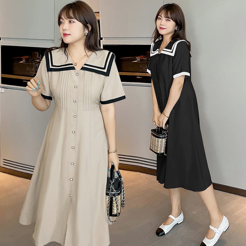 【 国内発送 d244 】大きいサイズ ピンタッグセーラー襟ワンピース セーラーワンピース ワンピース 大人 きれいめ 2L 3L 4L 5L