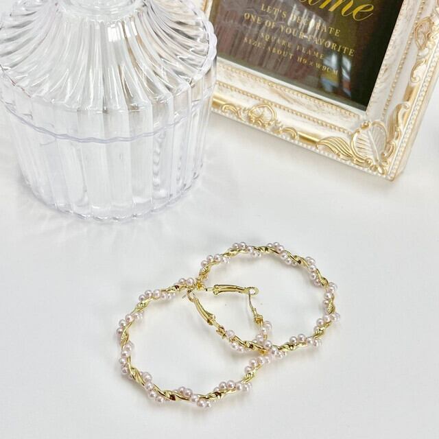 【 国内発送 a152 】ツイストパールフープピアス フープピアス ピアス パール 大ぶり 小顔効果