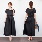 ウエストゴム仕様でウエストのメリハリを出す大人シンプルなベルト付きワンピースです♪
