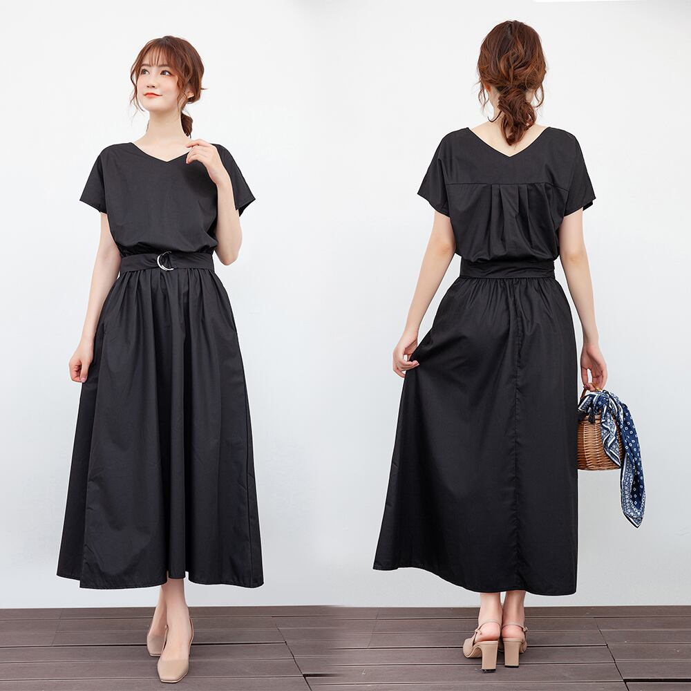 【 国内発送 d250 】ベルト付きギャザーワンピース ロングワンピース レディース aライン シンプル ポケット付き