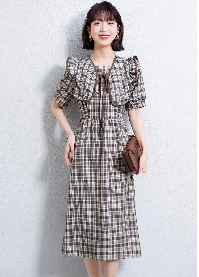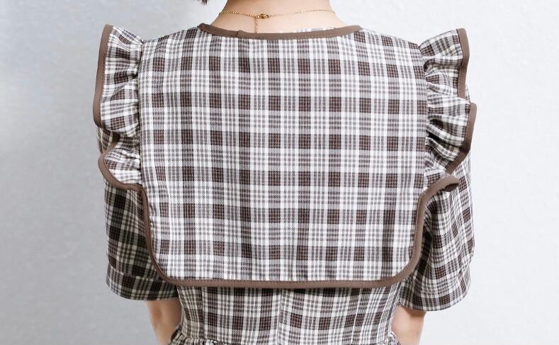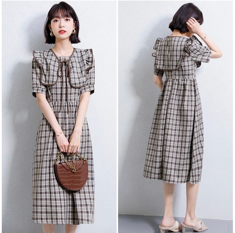 【 国内発送 d251 】ガーリー襟チェック柄ワンピース チェックワンピース 膝下 ワンピース レディース S M L 2L 3L
