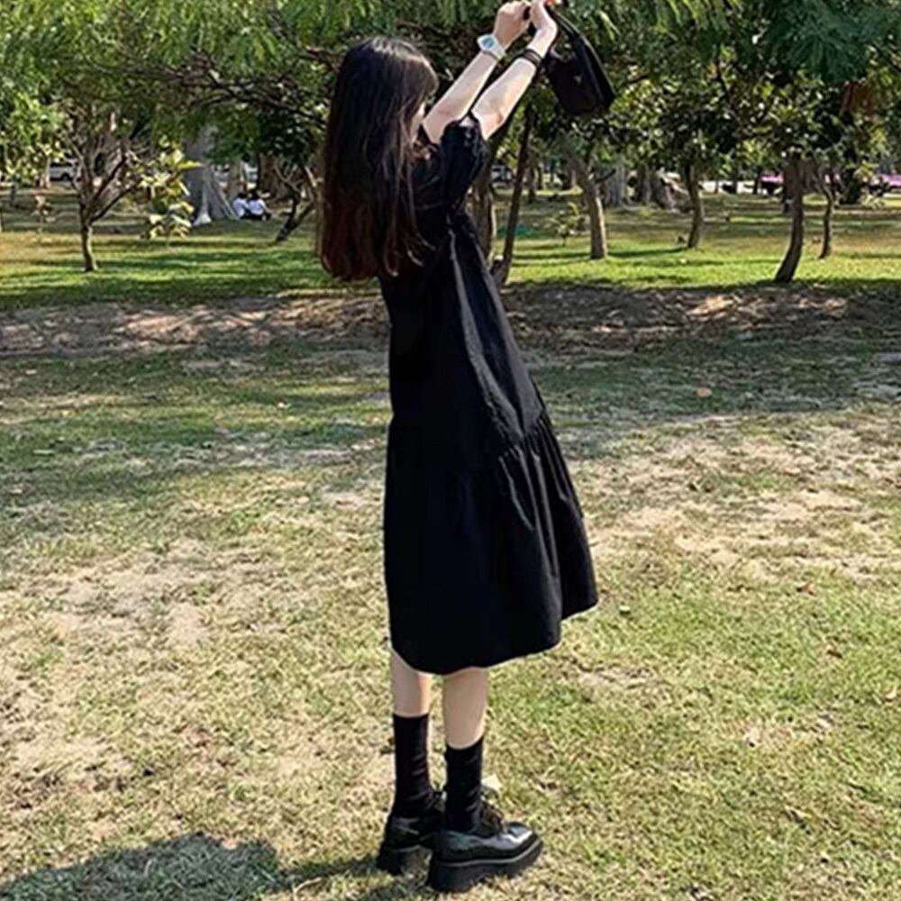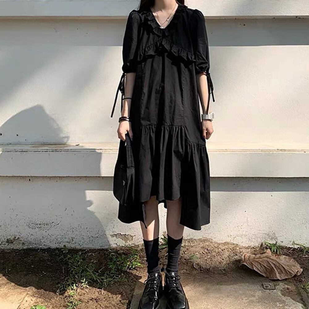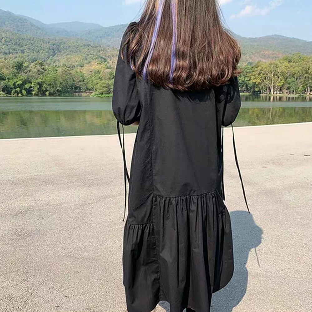 【 国内発送 d252 】モノトーンタックワンピース ミモレ丈ワンピース ワンピース 大人 かわいい