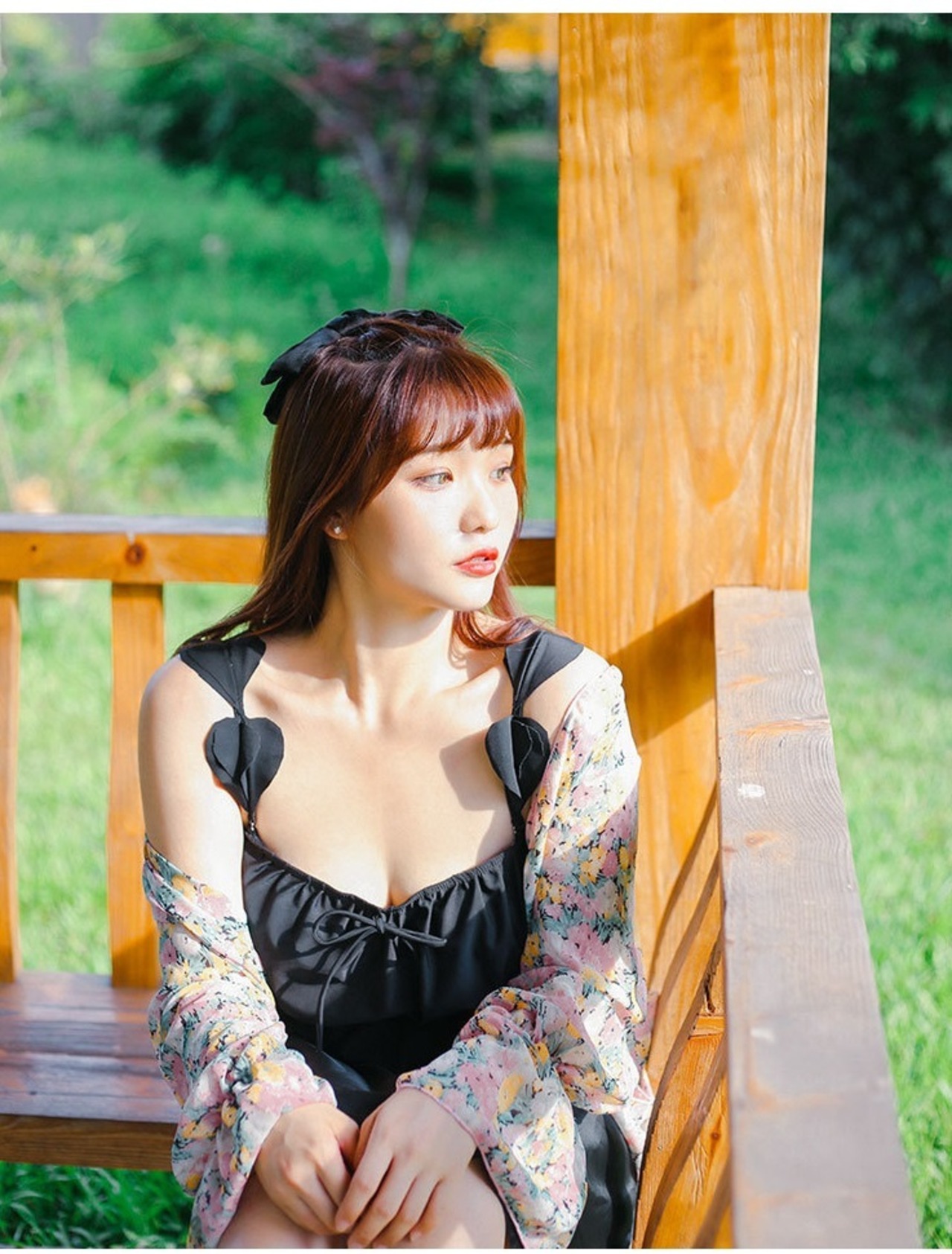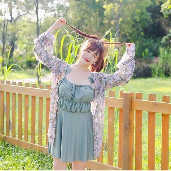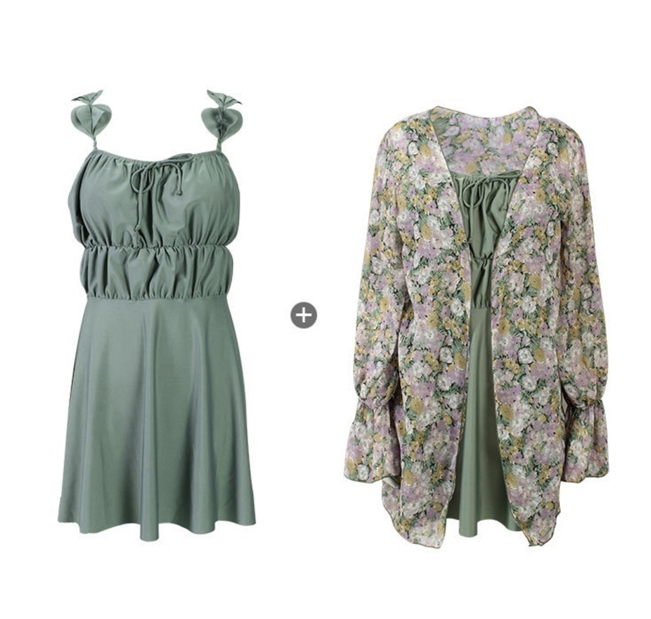 花柄のガウンはサッと羽織れて日差し対策や、体型カバーにもなります。
