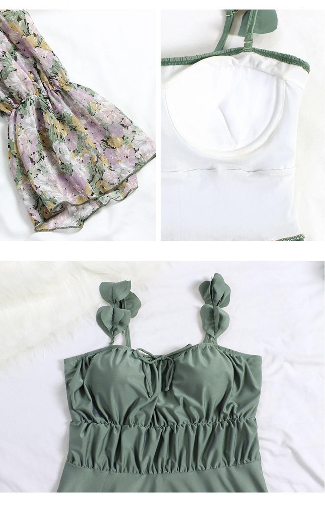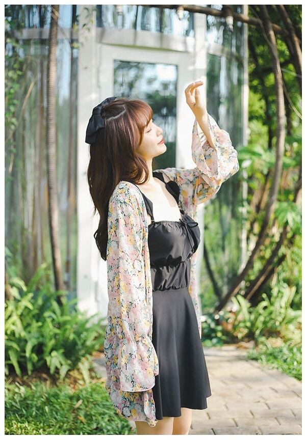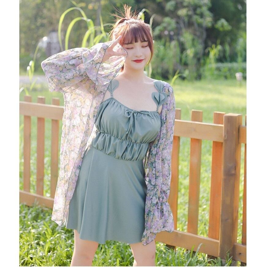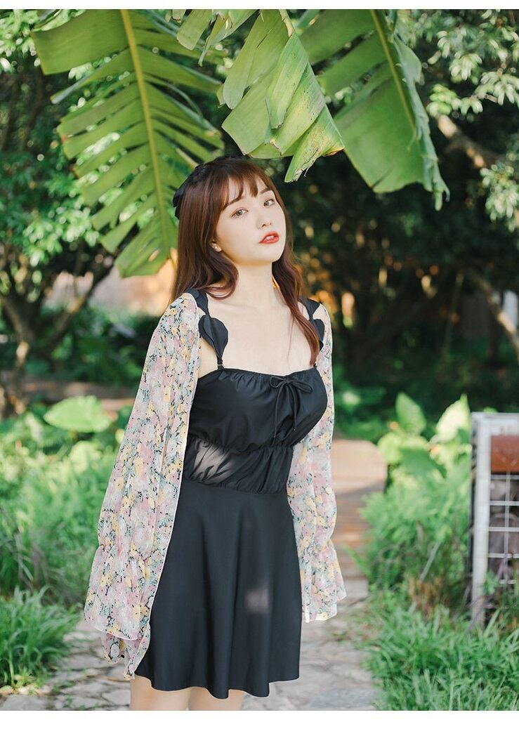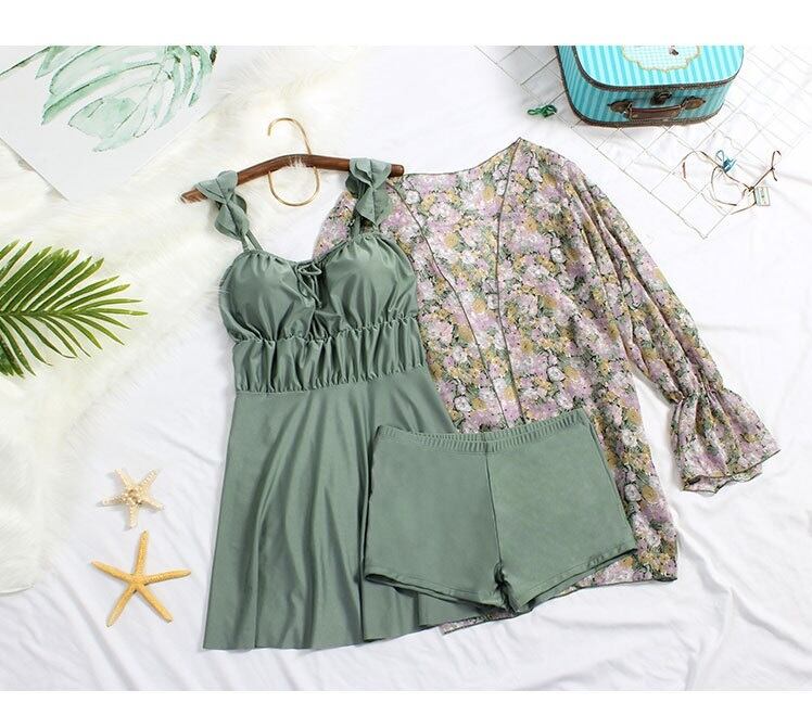 【 国内発送 2021水着048 】大きいサイズ 花柄ガウン水着3点セット ワンピース水着 セパレート パンツ 可愛い 大人可愛い 水着 3L 4L 5L 6L 7L