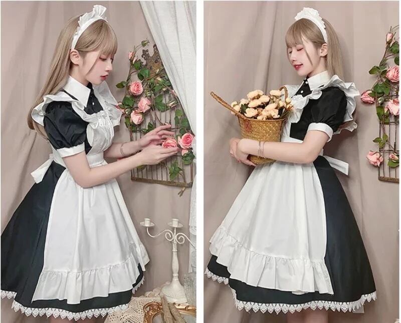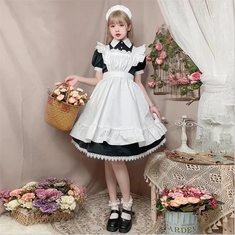 【 国内発送 c036 】クラシカルメイド服 ひざ丈 クラシカル 黒 コスプレ