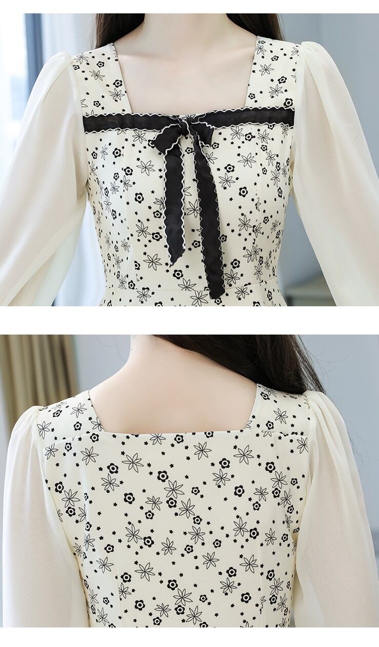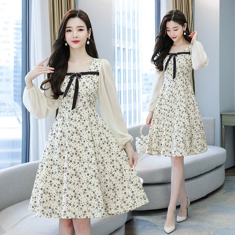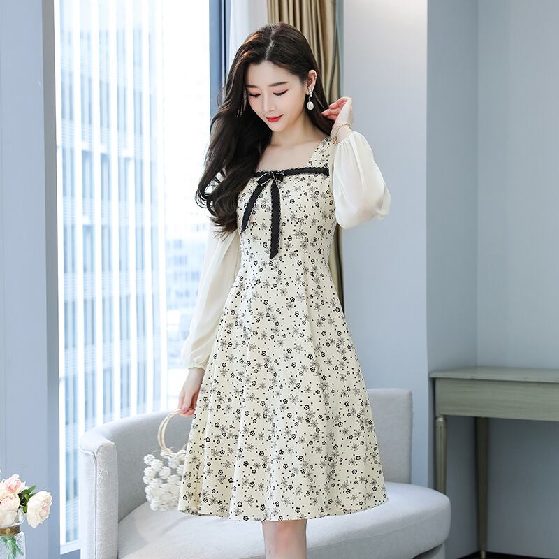 【 国内発送 d276】大きいサイズ あり 花柄 ワンピース ひざ丈 長袖