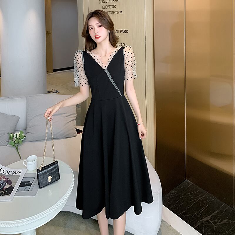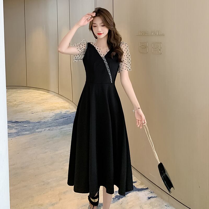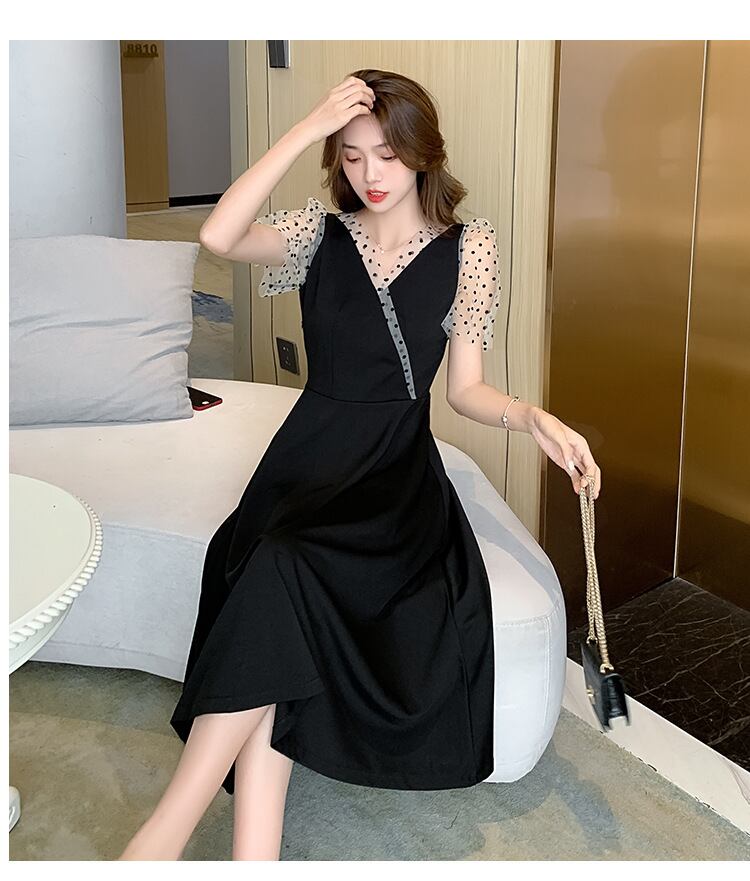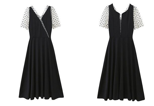 【 国内発送 d283 】大きいサイズあり ドット柄切り替えワンピース ワンピース レディース 半袖