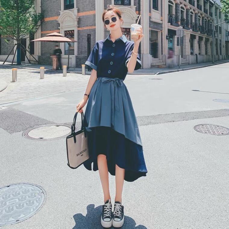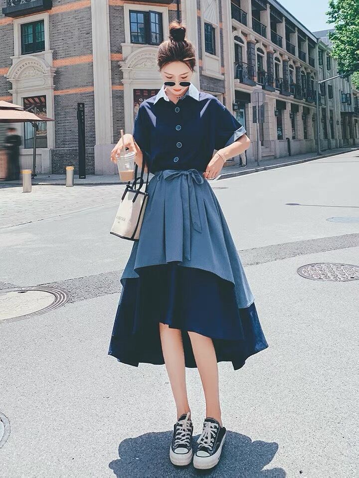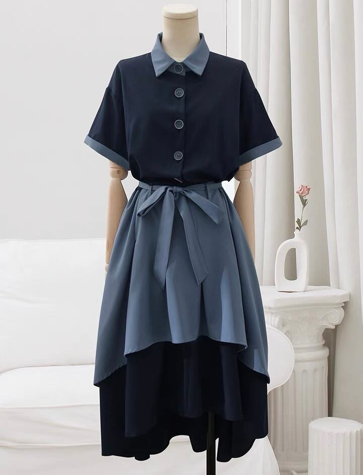 【 国内発送 d285 】大きいサイズあり バイカラーシャツワンピース ワンピース レディース シャツワンピ