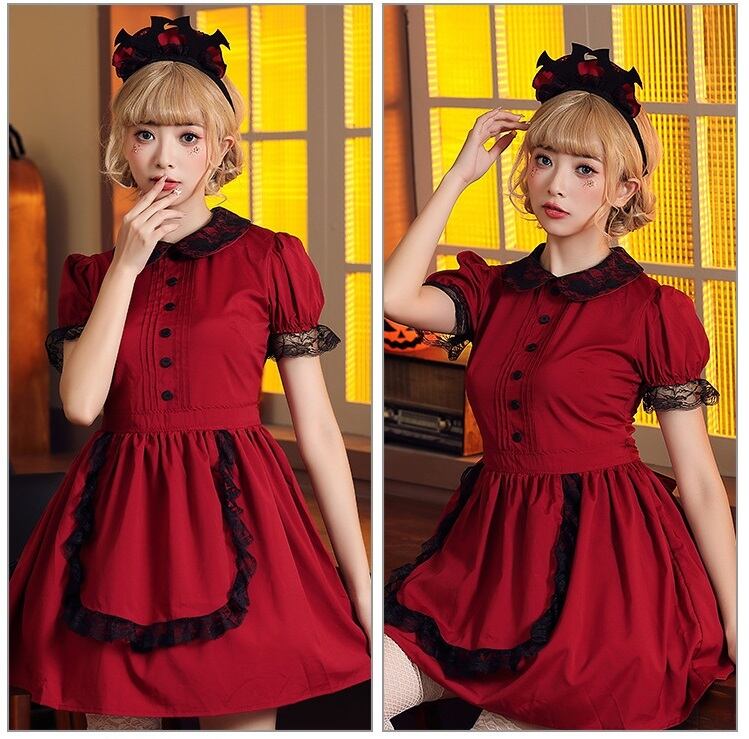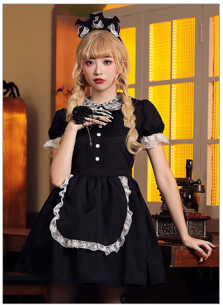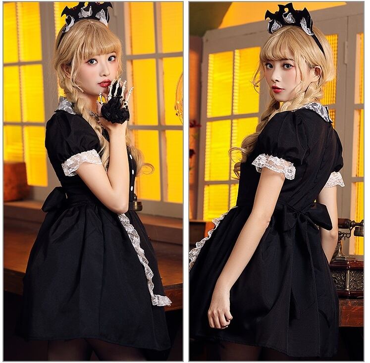 【 国内発送 c046 】レースメイド服 メイド服 ハロウィン イベント コスプレ 衣装 可愛い