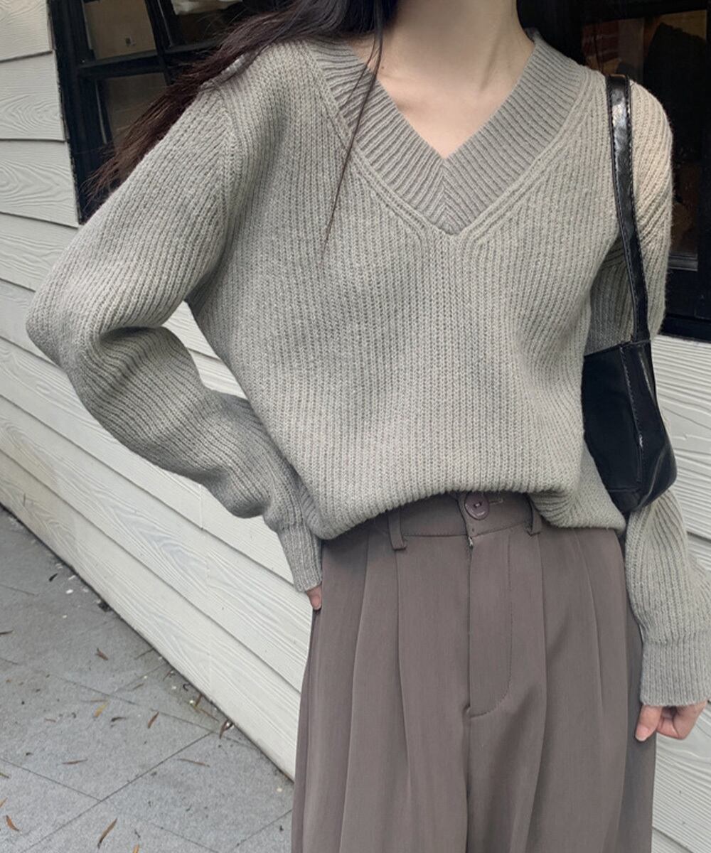 着回し力の高いシンプルなデザインのニットセーターです。