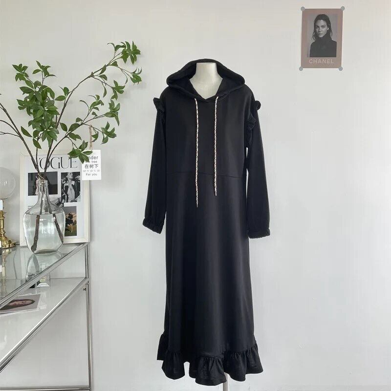 【 国内発送 d321 】パーカーワンピース フリル レディース ワンピース ロング カジュアル 大人 フェミニン 長袖