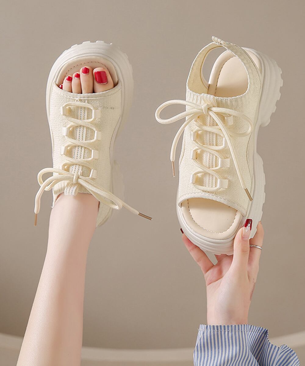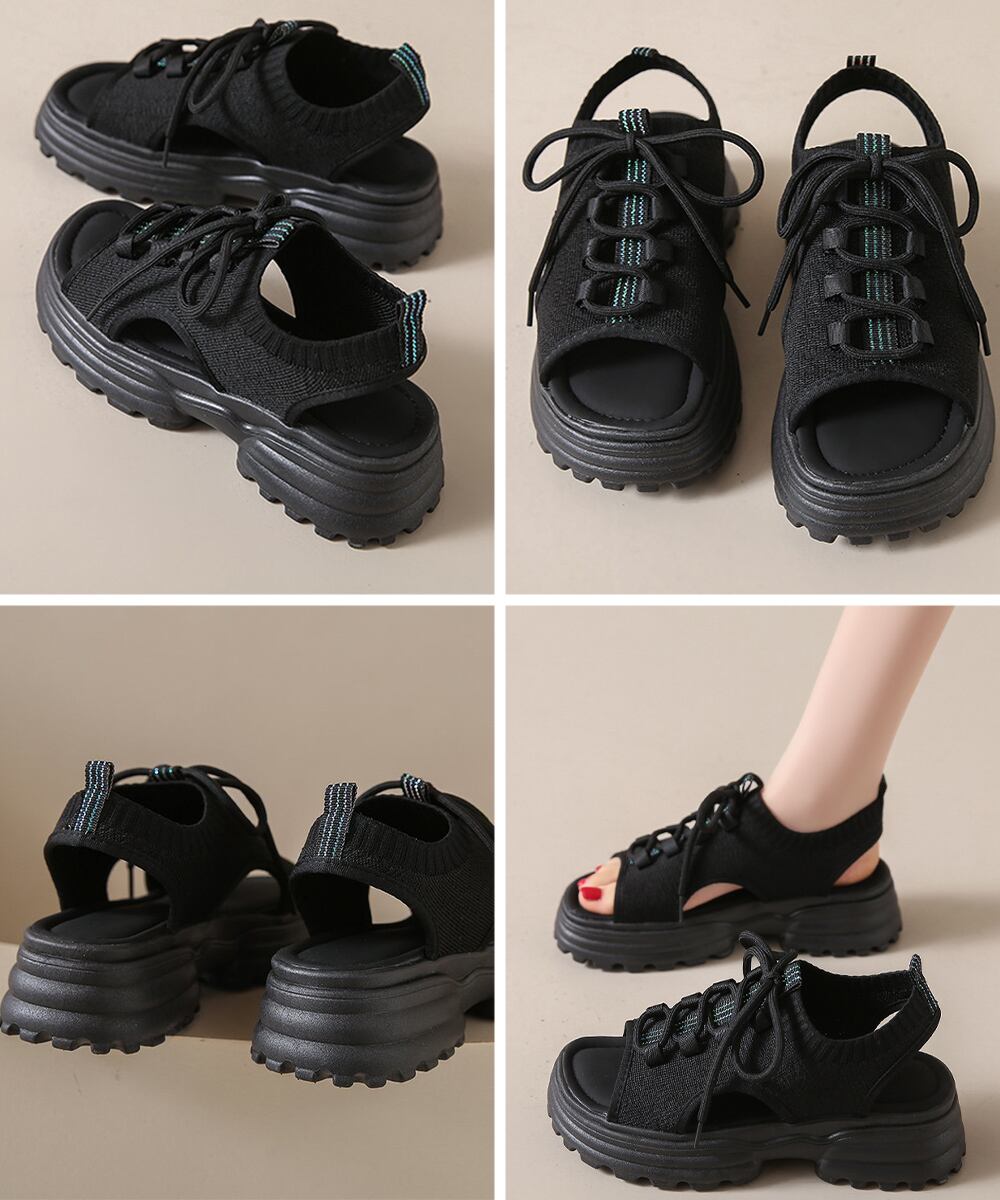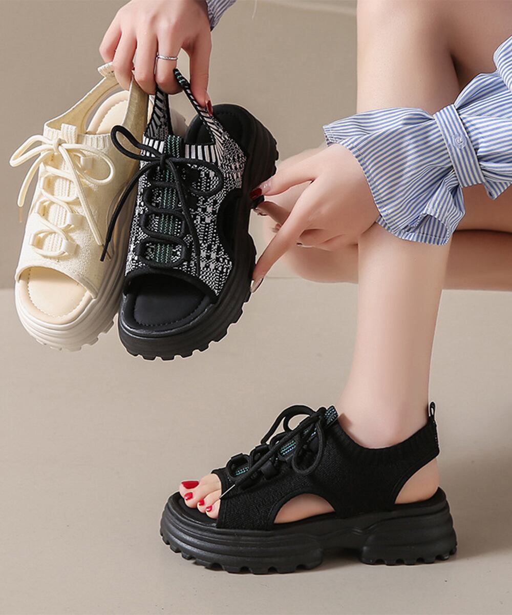 【 国内発送 k060 】厚底5cm 厚底 スポーツ サンダル レディース ニットサンダル 美脚 脚長 ボリュームソール