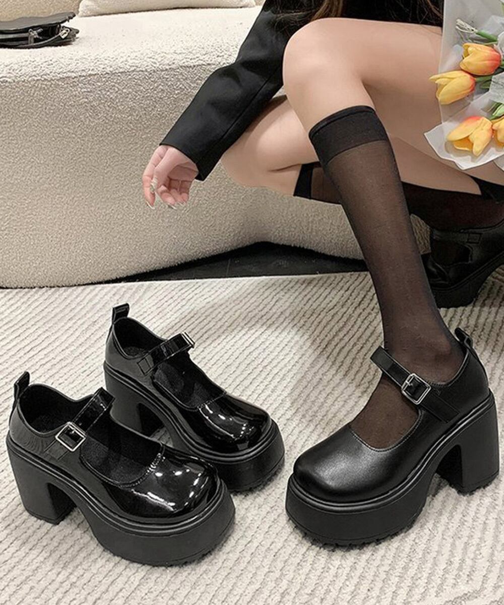 【国内発送 k065 】厚底ローファー パンプス 9cm ブラック 厚底 シューズ レディース エナメル マット